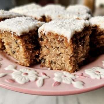 Cover with a simple glace icing or creamy vanilla icing and sprinkle with coconut.